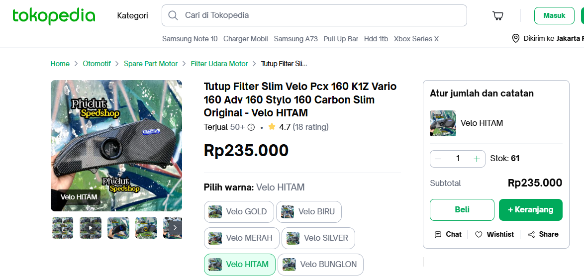 Tutup Filter Slim Velo Pcx 160 K1Z Vario 160 Adv 160 Stylo 160 Carbon Slim Original - Velo HITAM