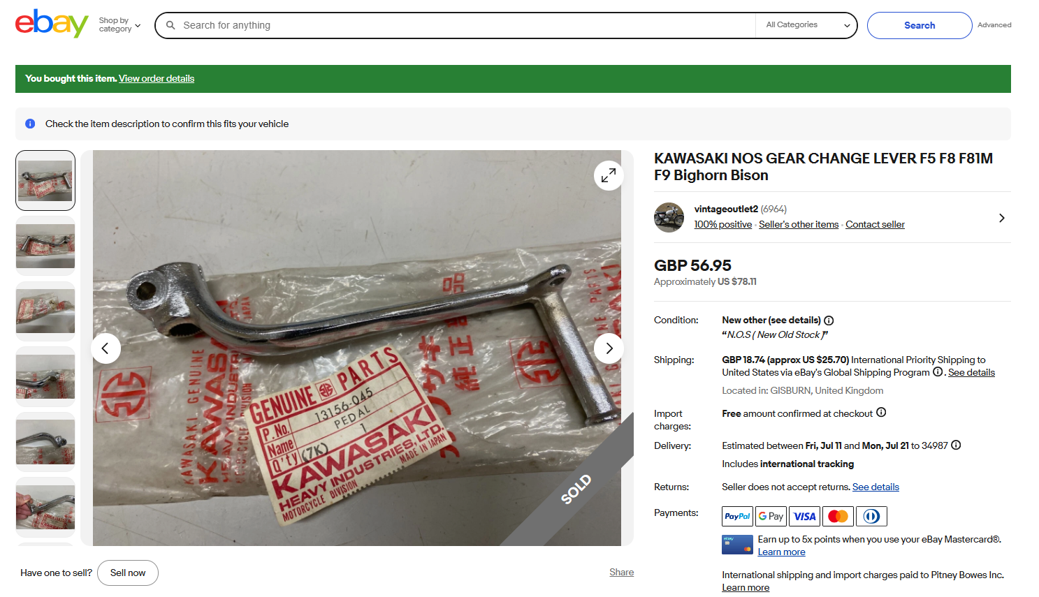 KAWASAKI NOS GEAR CHANGE LEVER F5 F8 F81M F9 Bighorn Bison