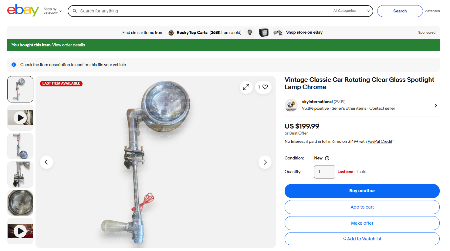 Vintage Classic Car Rotating Clear Glass Spotlight Lamp Chrome