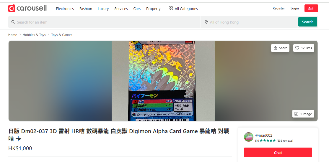 日版 Dm02-037 3D 雷射 HR咭 數碼暴龍 白虎獸 Digimon Alpha Card Game 暴龍咭 對戰咭 卡