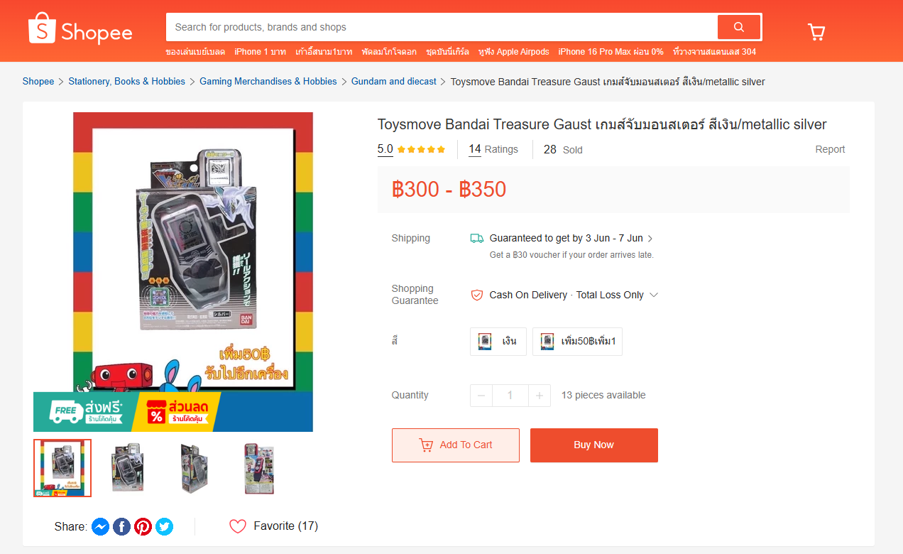 Toysmove Bandai Treasure Gaust เกมส์จับมอนสเตอร์ สีเงิน/metallic silver