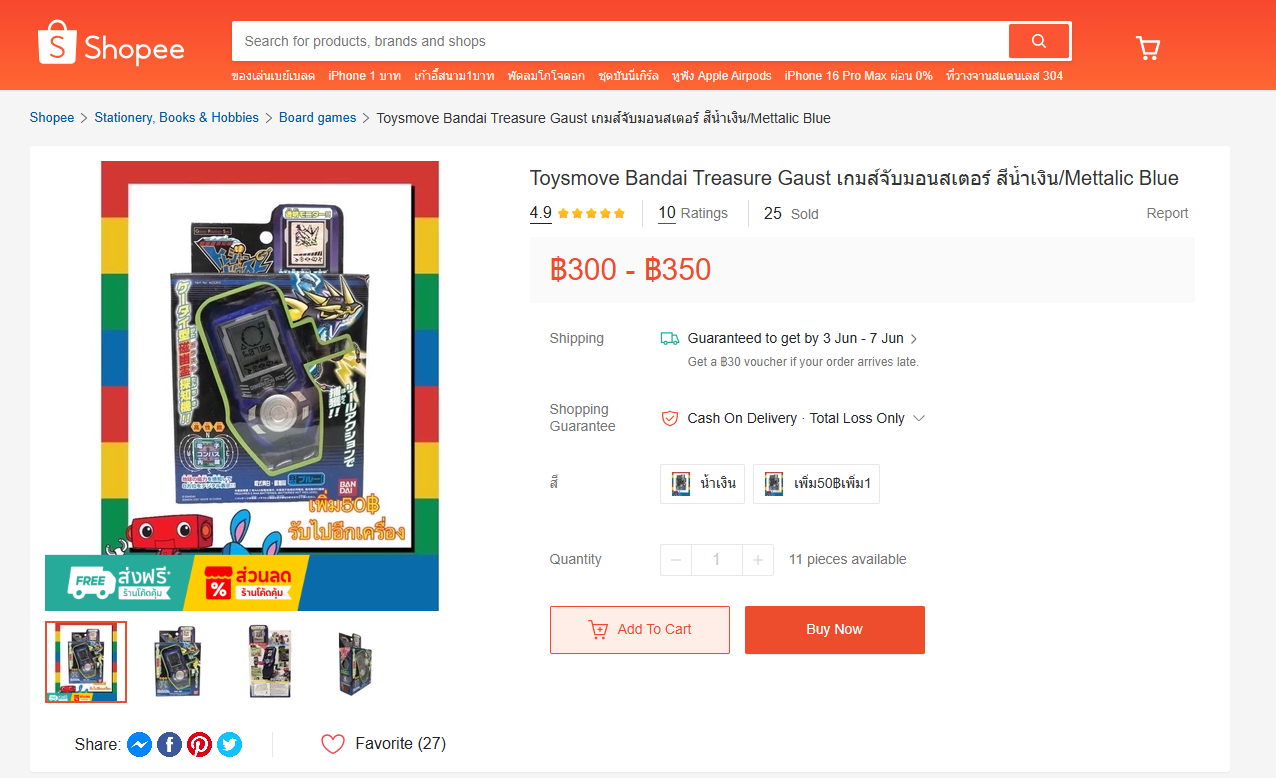Toysmove Bandai Treasure Gaust เกมส์จับมอนสเตอร์ สีน้ำเงิน/Mettalic Blue