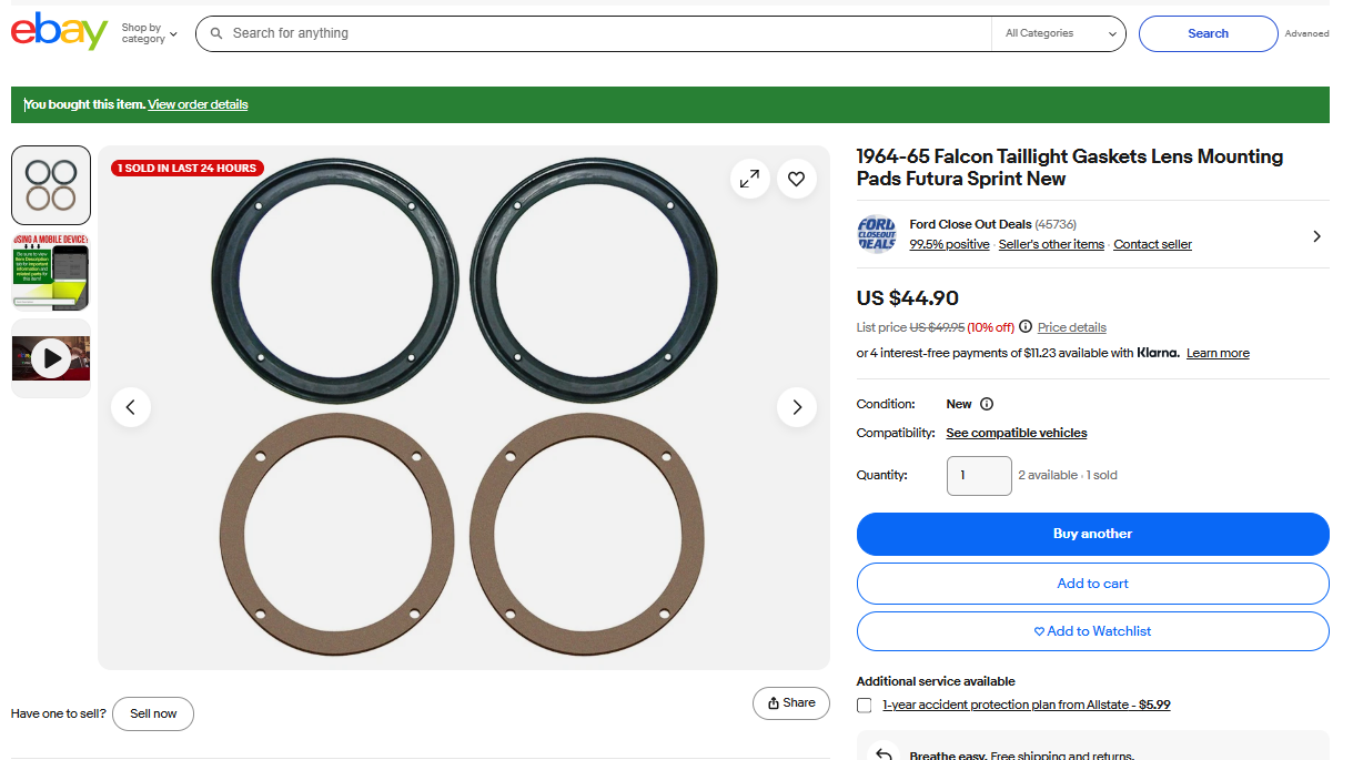 1964-65 Falcon Taillight Gaskets Lens Mounting Pads Futura Sprint New