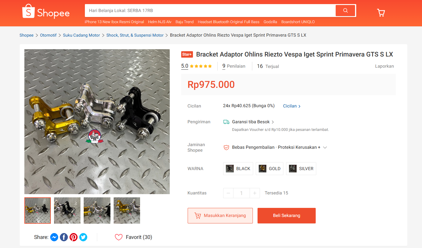 Bracket Adaptor Ohlins Riezto Vespa Iget Sprint Primavera GTS S LX