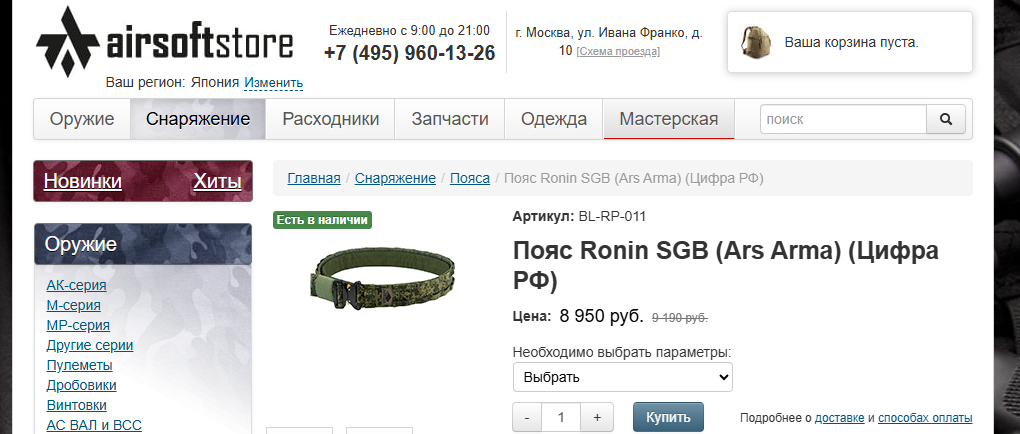Пояс Ronin SGB (Ars Arma) (Цифра РФ)