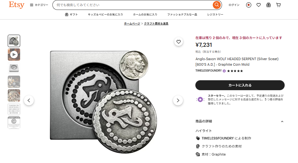 Anglo-Saxon WOLF HEADED SERPENT (Silver Sceat) [600’S A.D.] - Graphite Coin Mold