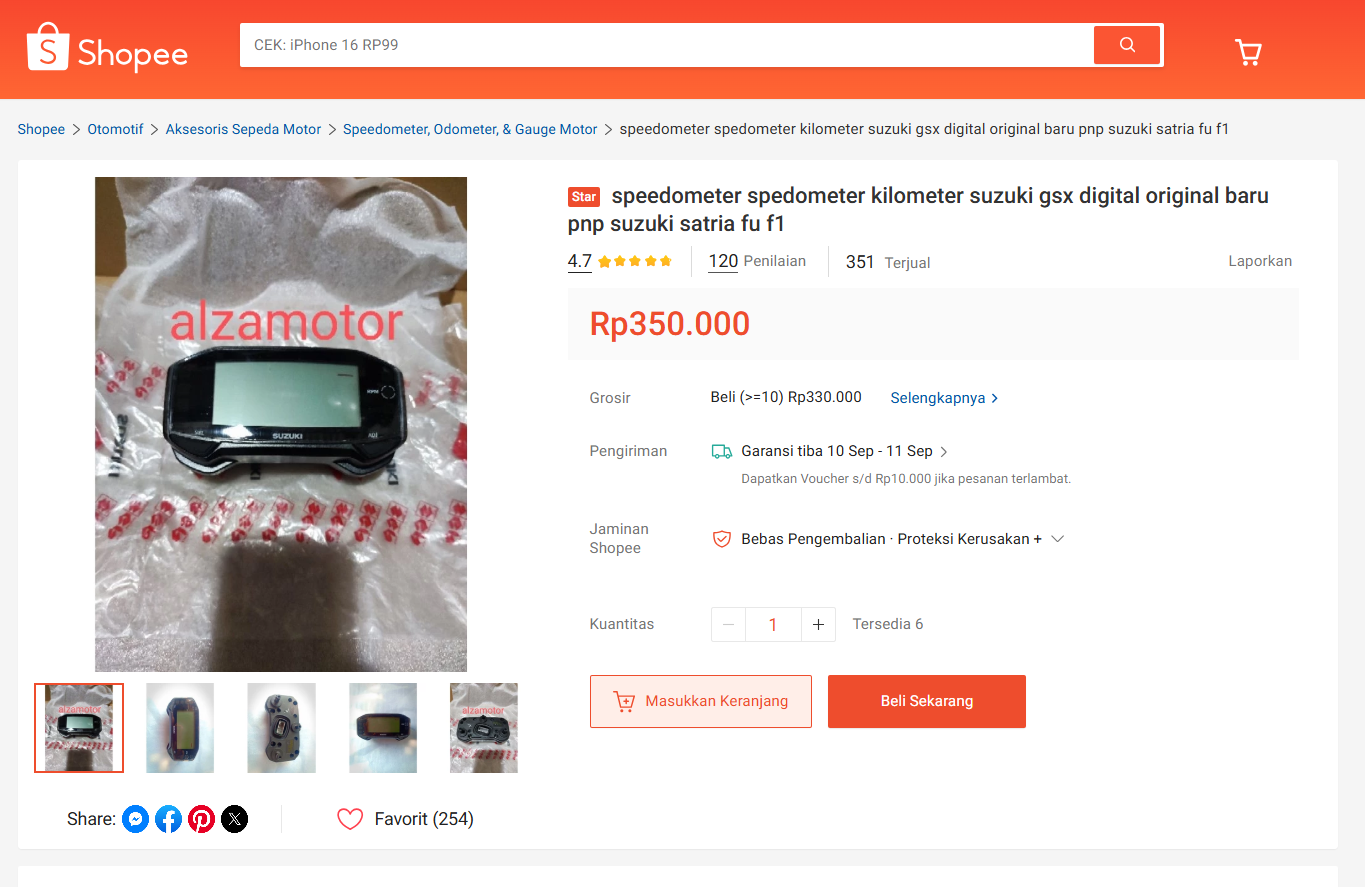 speedometer spedometer kilometer suzuki gsx digital original baru pnp suzuki satria fu f1