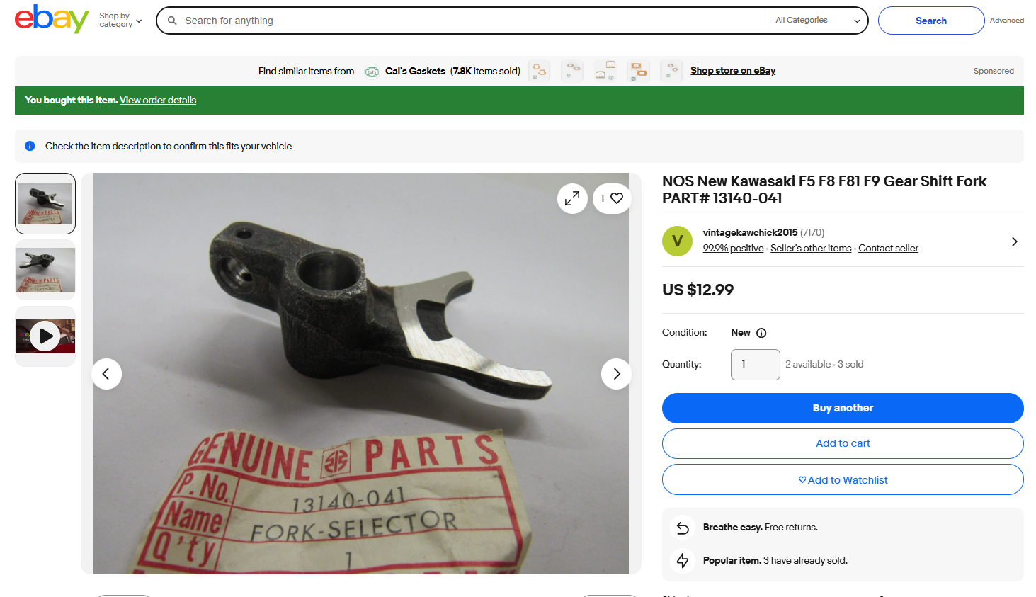NOS New Kawasaki F5 F8 F81 F9 Gear Shift Fork PART# 13140-041