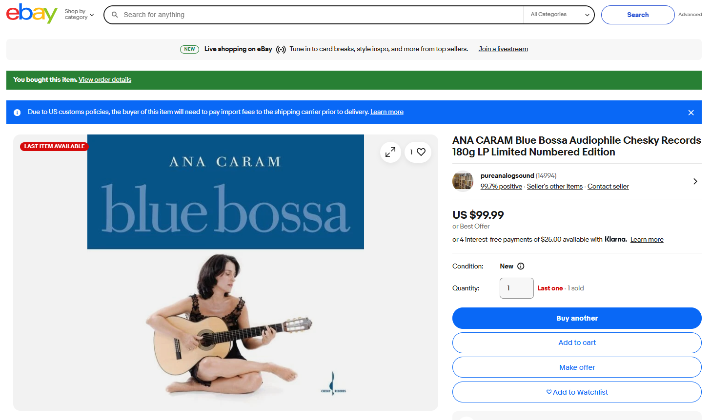 ANA CARAM Blue Bossa Audiophile Chesky Records 180g LP Limited Numbered Edition