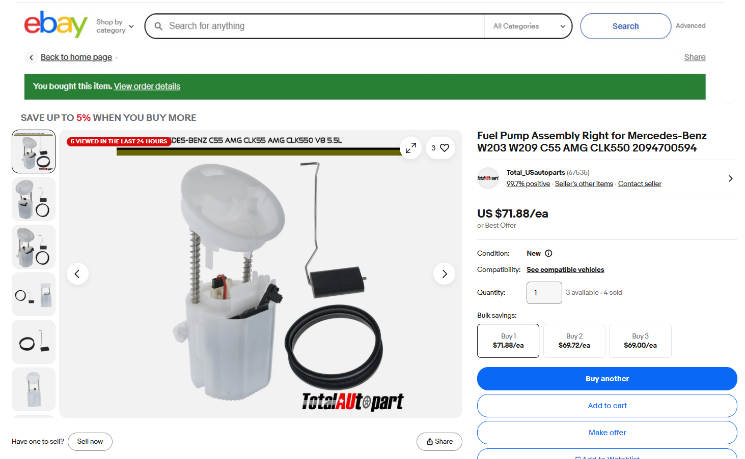 Fuel Pump Assembly Right for Mercedes-Benz W203 W209 C55 AMG CLK550 2094700594