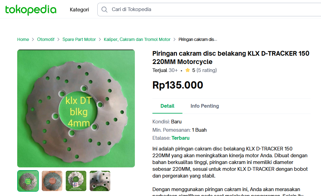 Piringan cakram disc belakang KLX D-TRACKER 150 220MM Motorcycle