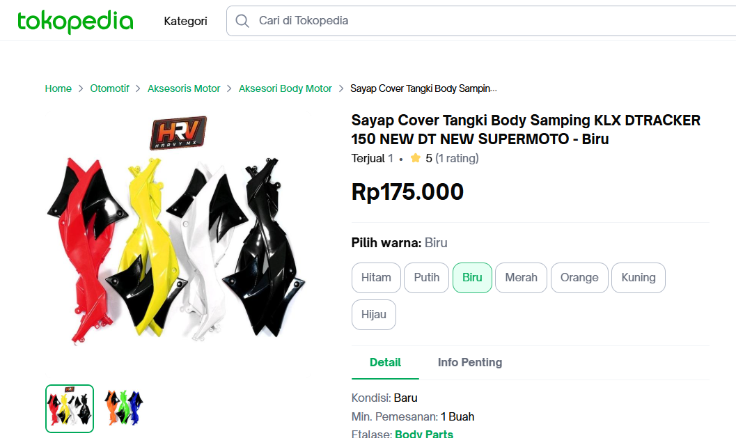 Sayap Cover Tangki Body Samping KLX DTRACKER 150 NEW DT NEW SUPERMOTO - Biru