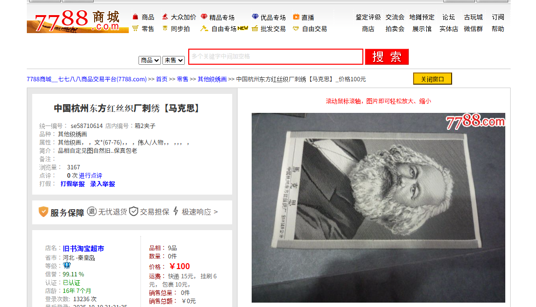 中国杭州东方红丝织厂刺绣【马克思】