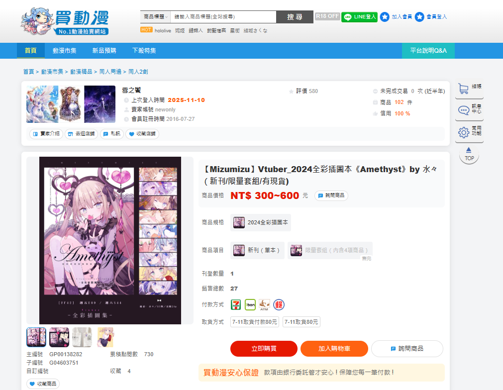 【Mizumizu】Vtuber_2024全彩插圖本《Amethyst》by 水々(新刊/限量套組/有現貨)