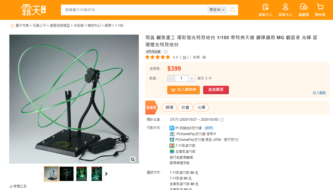 現貨 鹹魚重工 環形發光特效地台 1/100 帶特典天線 鋼彈通用 MG 觀星者 光輝 星環燈光特效地台