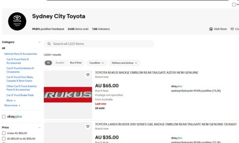 国名:オーストラリア サイト名:ebay.com.au ショップURL:https://www.ebay.com.au/sch/i.html?_ssn=sydneycitytoyota&store_name=sy...