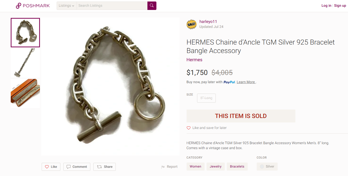 HERMES Chaine d’Ancle TGM Silver 925 Bracelet Bangle Accessory