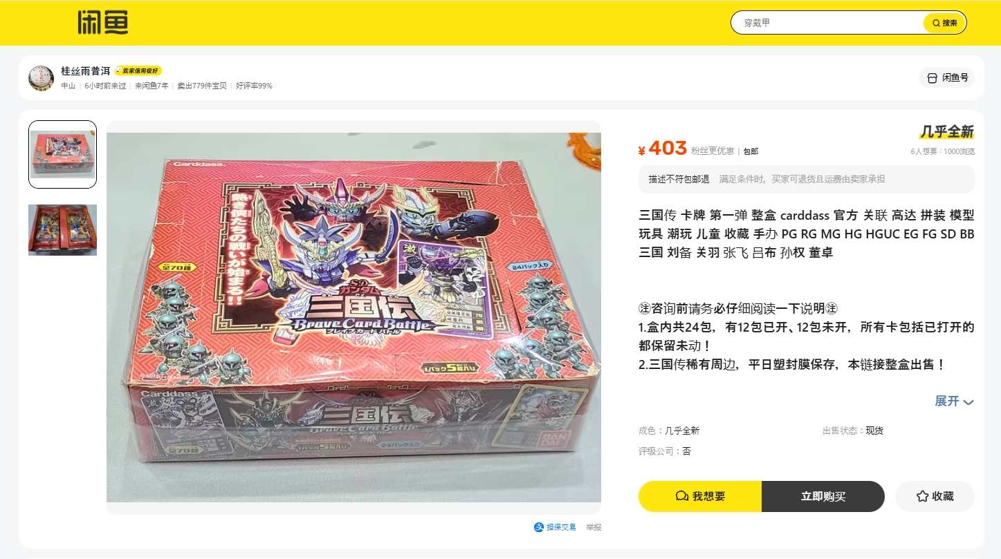 三国传 卡牌 第一弹 整盒 carddass 官方 关联 高达 拼装 模型