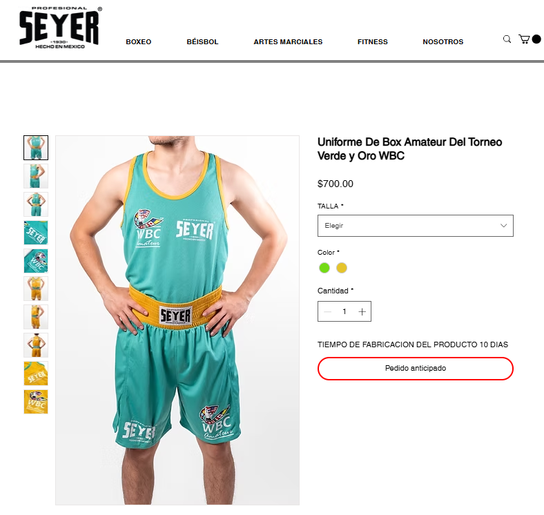 Uniforme De Box Amateur Del Torneo Verde y Oro WBC