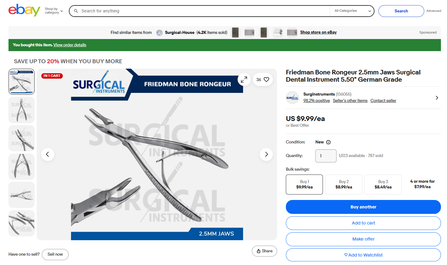 Friedman Bone Rongeur 2.5mm Jaws Surgical Dental Instrument 5.50" German Grade