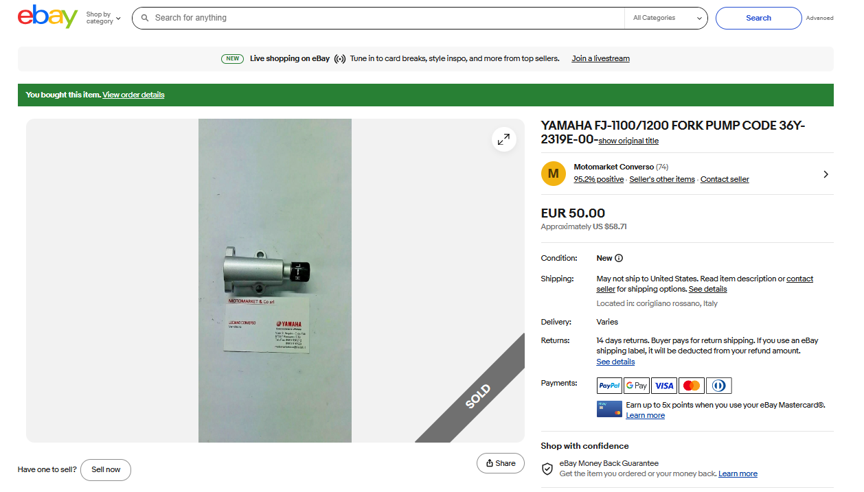 YAMAHA FJ-1100/1200 FORK PUMP CODE 36Y-2319E-00-