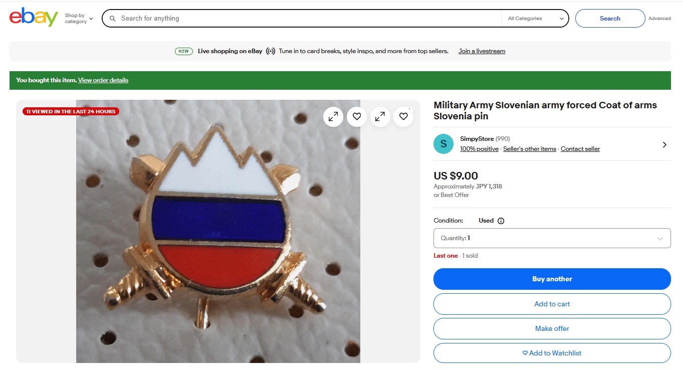 Military Army Slovenian army forced Coat of arms Slovenia pin