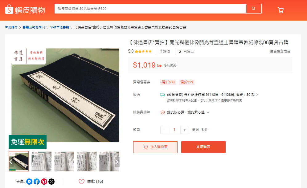 【佛道書店*實拍】開光科儀佛像開光等宣道士書籍宗教紙線裝96頁貨古籍