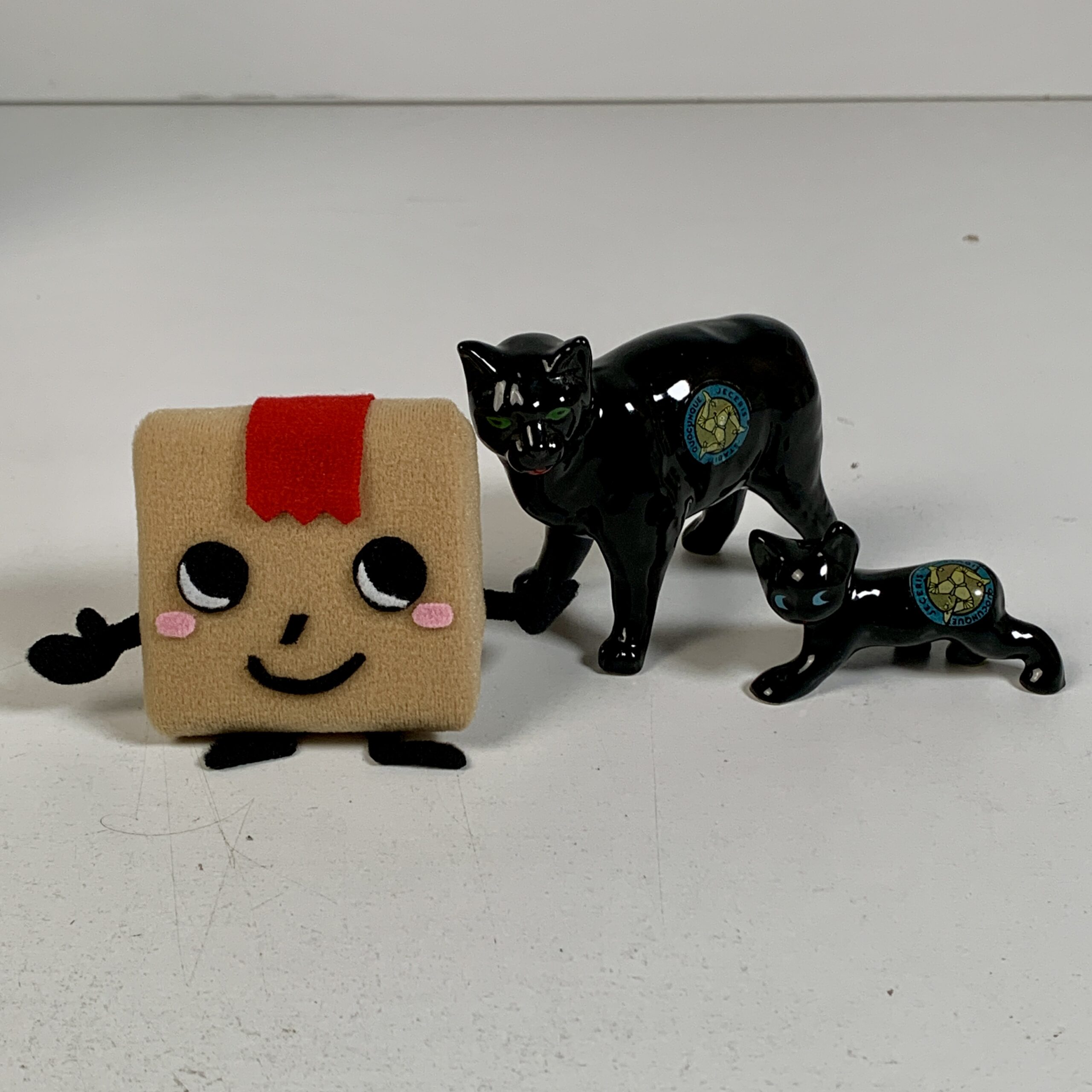 2 Vtg Pottery Ceramic Isle of Man Black Manx Cat Ornament Figurines Stamped