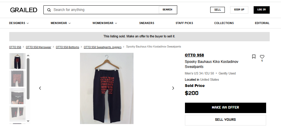 Spooky Bauhaus Kiko Kostadinov Sweatpants