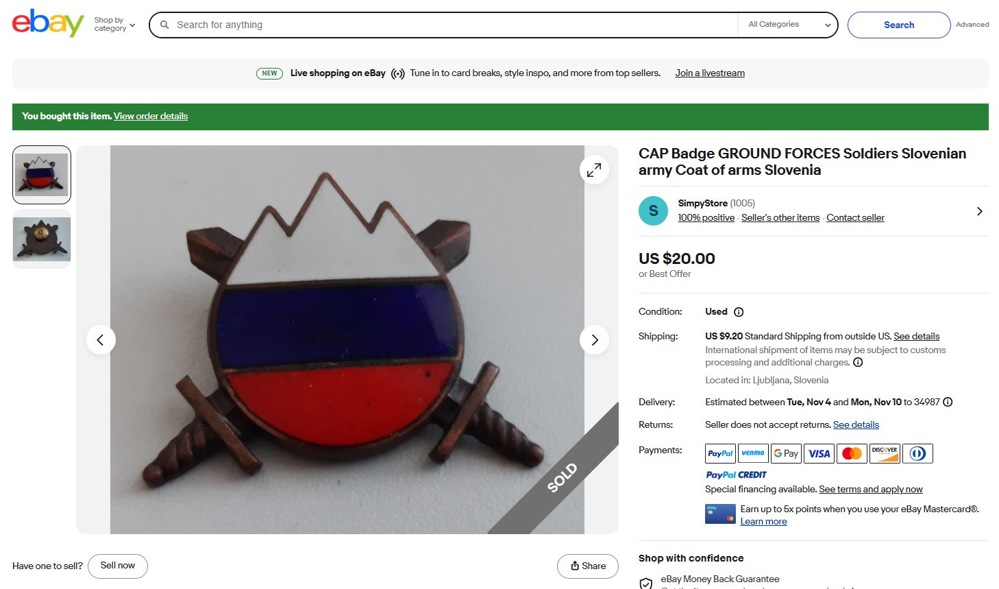 CAP Badge GROUND FORCES Soldiers Slovenian army Coat of arms Slovenia