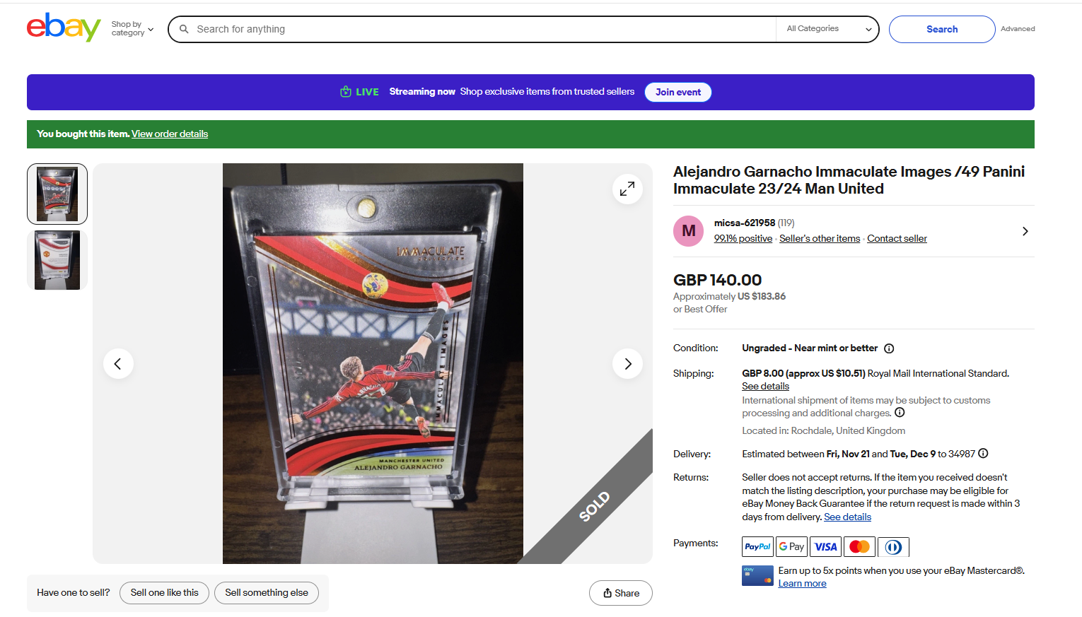 Alejandro Garnacho Immaculate Images /49 Panini Immaculate 23/24 Man United