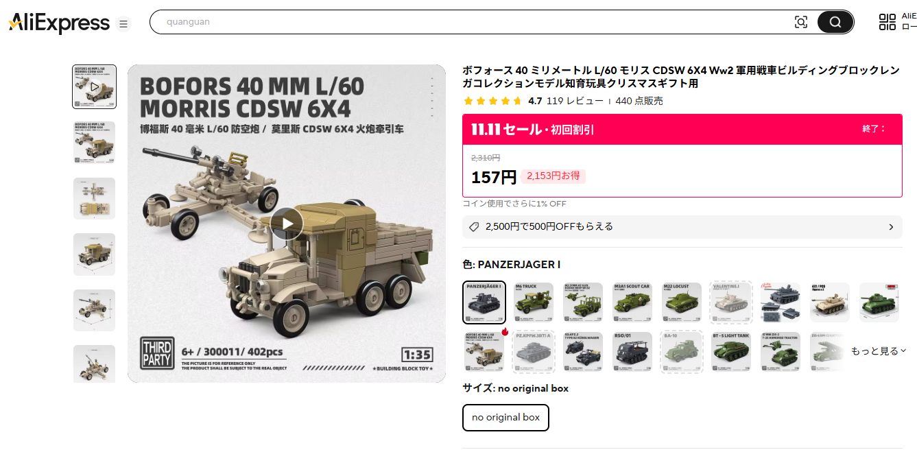 ボフォース 40 ミリメートル L/60 モリス CDSW 6X4 Ww2 軍用戦車ビルディングブロックレンガコレクションモデル知育玩具クリスマスギフト用