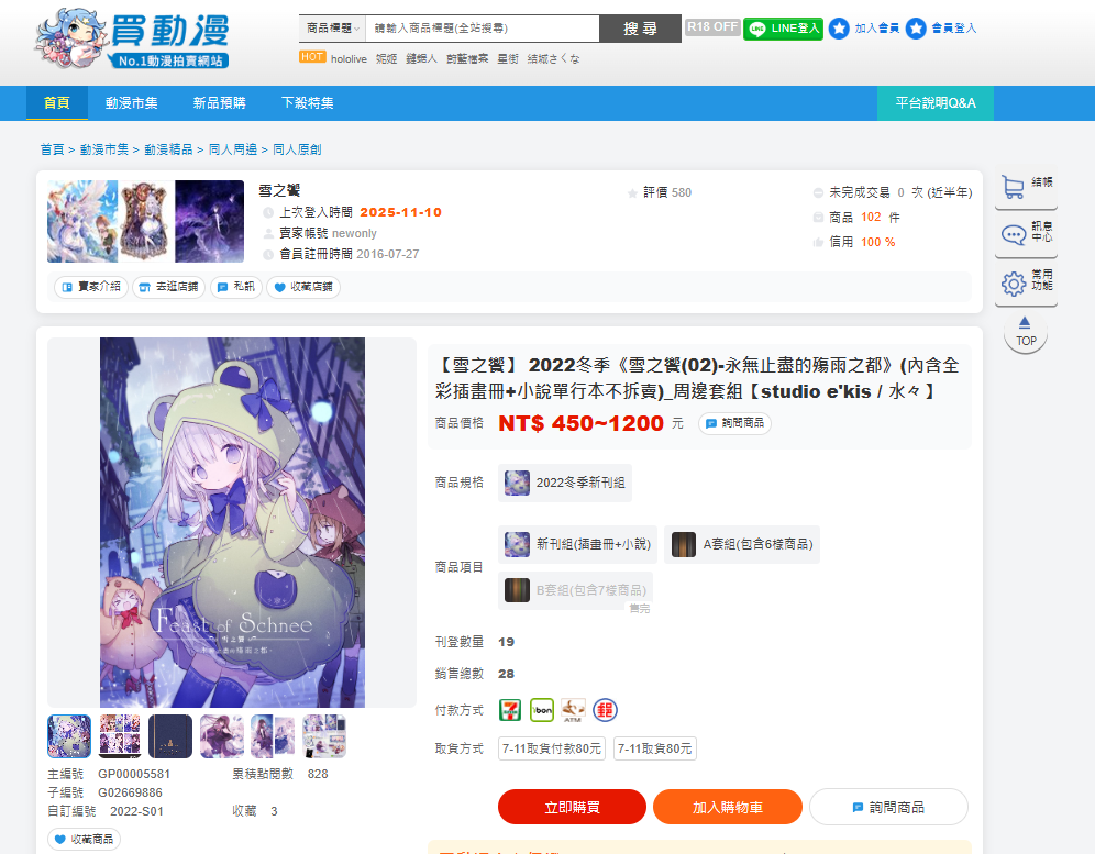 【雪之饗】 2022冬季《雪之饗(02)-永無止盡的殤雨之都》(內含全彩插畫冊+小說單行本不拆賣)_周邊套組【studio e'kis / 水々】