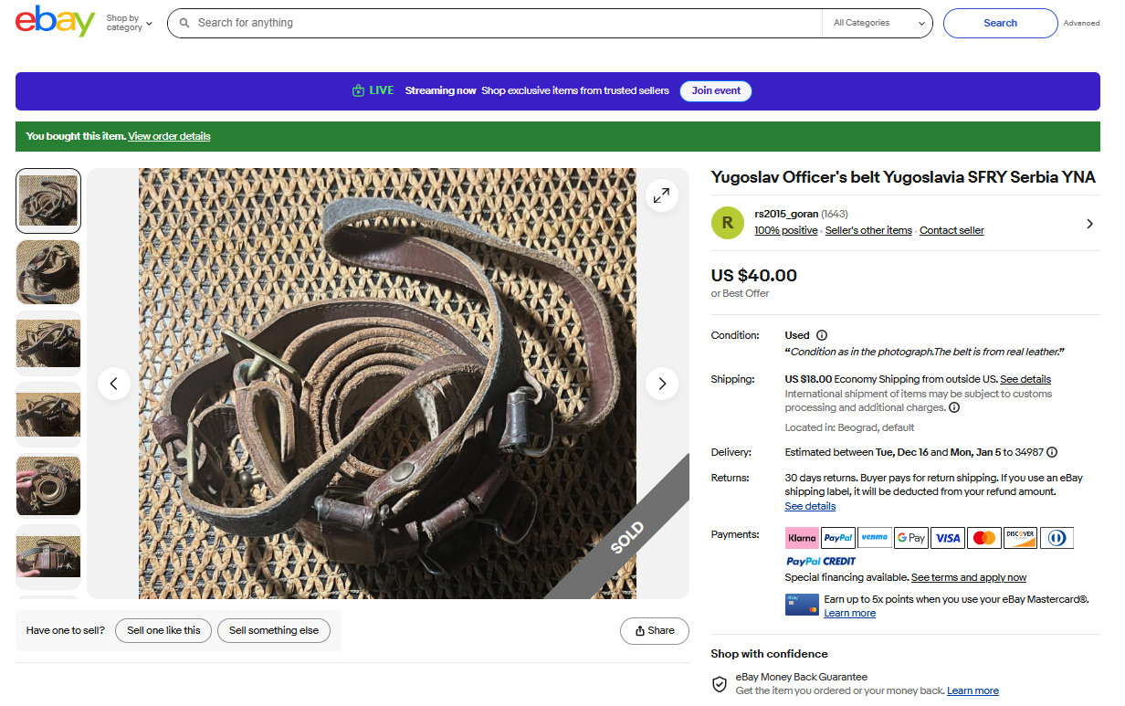 Yugoslav Officer's belt Yugoslavia SFRY Serbia YNA