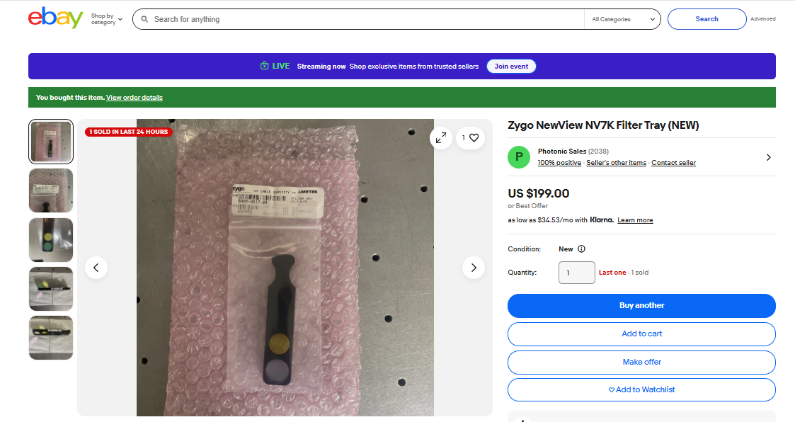 Zygo NewView NV7K Filter Tray (NEW)