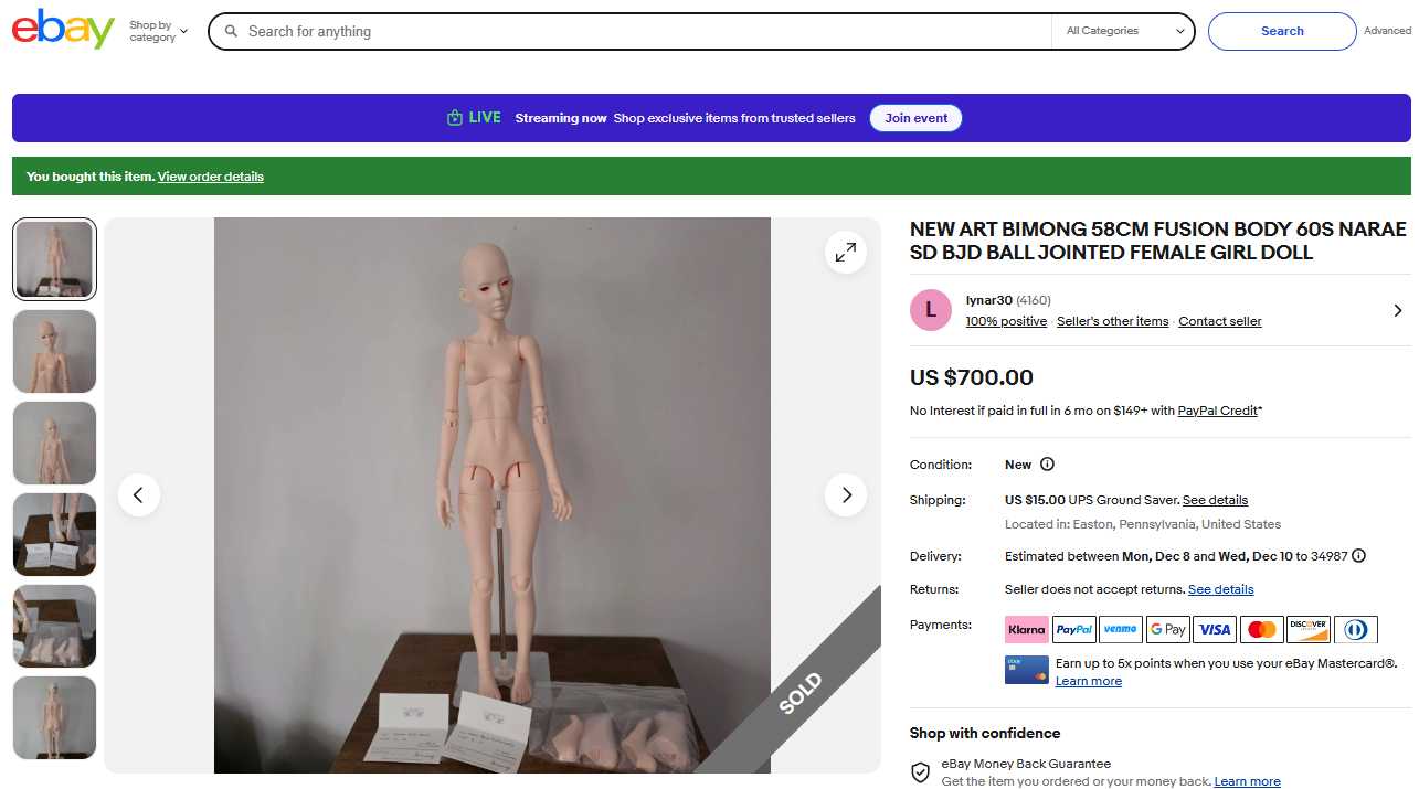 新品アートビモン 58cm フュージョンボディ 60S Narae SD BJD ボールジョイント女性ガールドール-