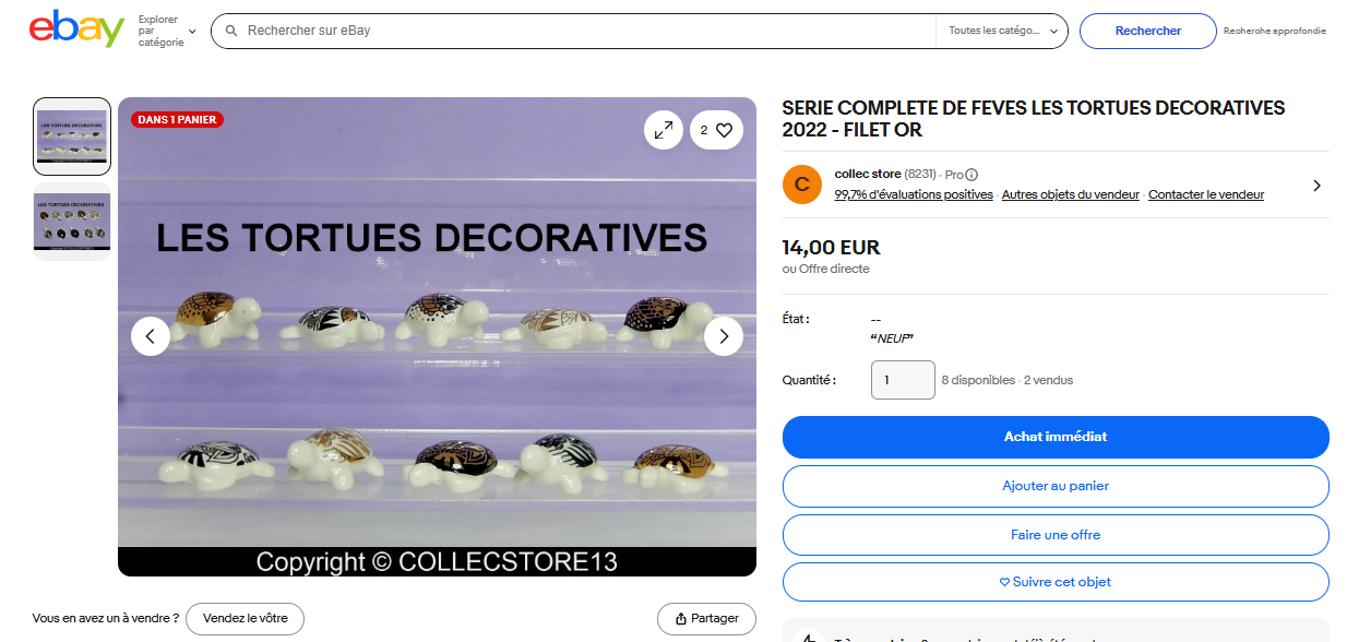 SERIE COMPLETE DE FEVES LES TORTUES DECORATIVES 2022 - FILET OR