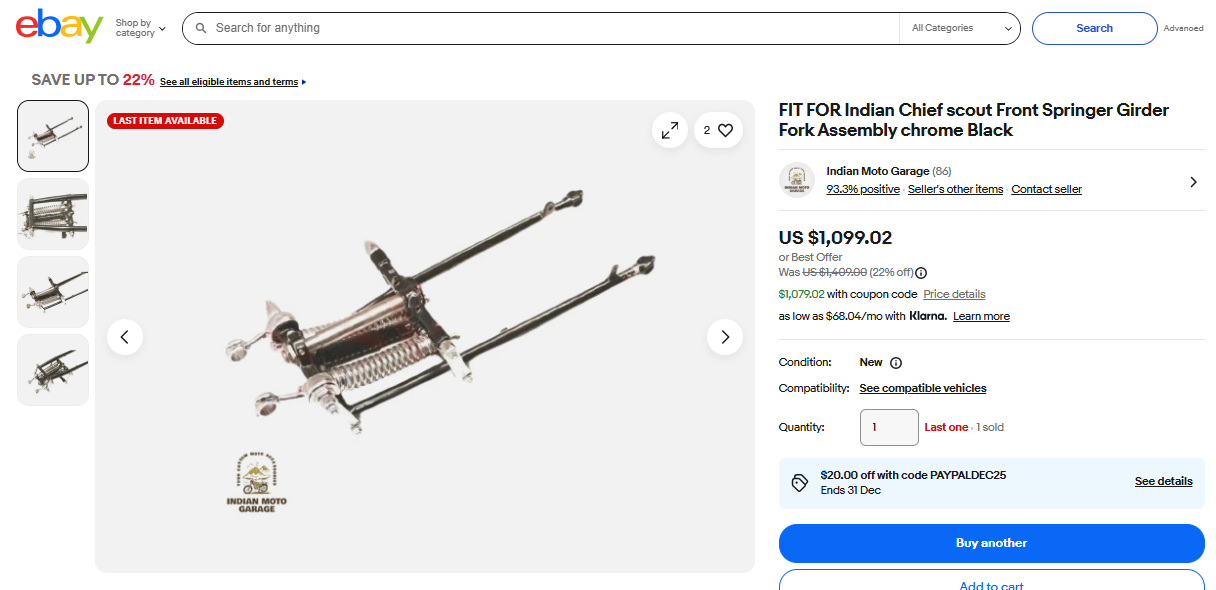 FIT FOR Indian Chief scout Front Springer Girder Fork Assembly chrome Black