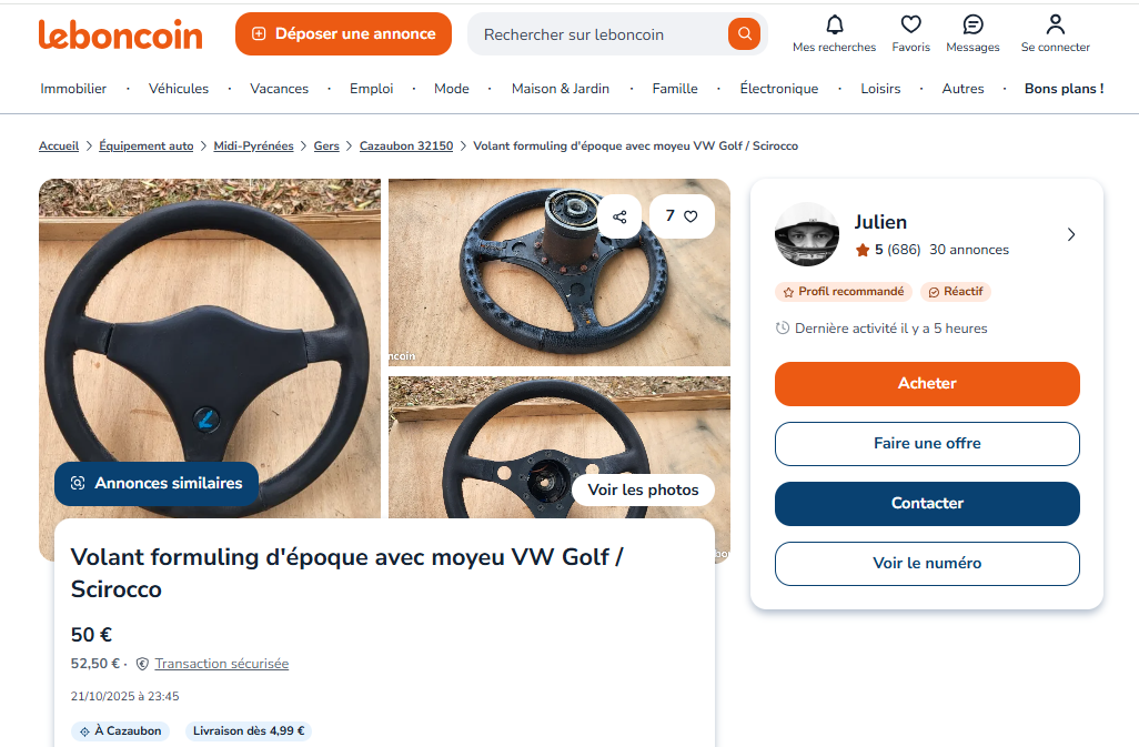 Volant formuling d'époque avec moyeu VW Golf / Scirocco