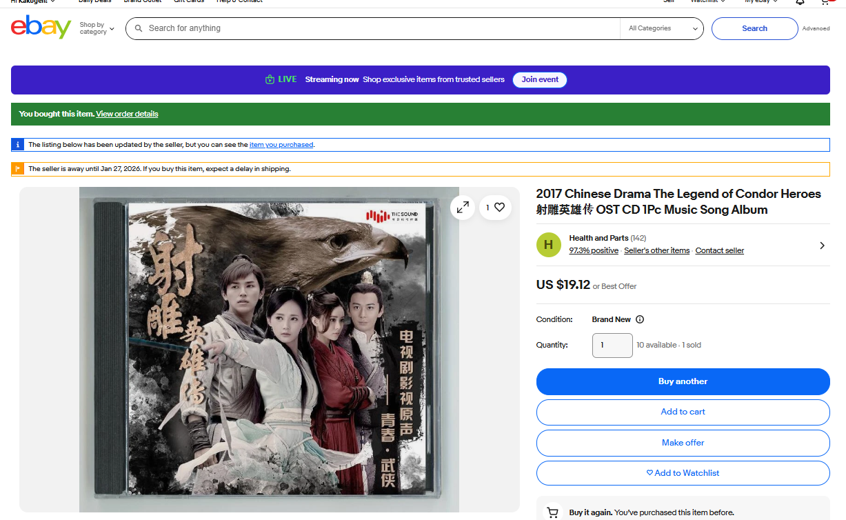 N様。この度はカウベイをご利用頂きましてありがとうございます。アメリカサイトebay.com(イーベイアメリカ)よりご手配をさせて頂きました。